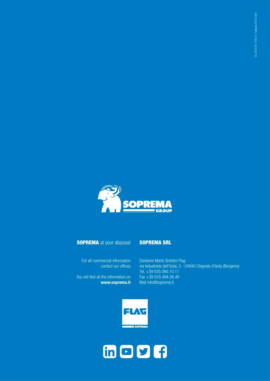 ENVIRONMENTAL PRODUCT DECLARATION | FLAGON® PVC24SOPREMA at your disposalSOPREMA SRLDivisione Manti Sintetici Flagvia Industriale dell’Isola, 3 - 24040 Chignolo d’Isola (Bergamo)Tel. +39 035.095.10.11Fax +39 035.494.06.49 Mail info@soprema.it For all commercial informationcontact our officesYou will find all the information onwww.soprema.itDC 2019-09- IT-Rev 0 - Febbraio 2019-1000
